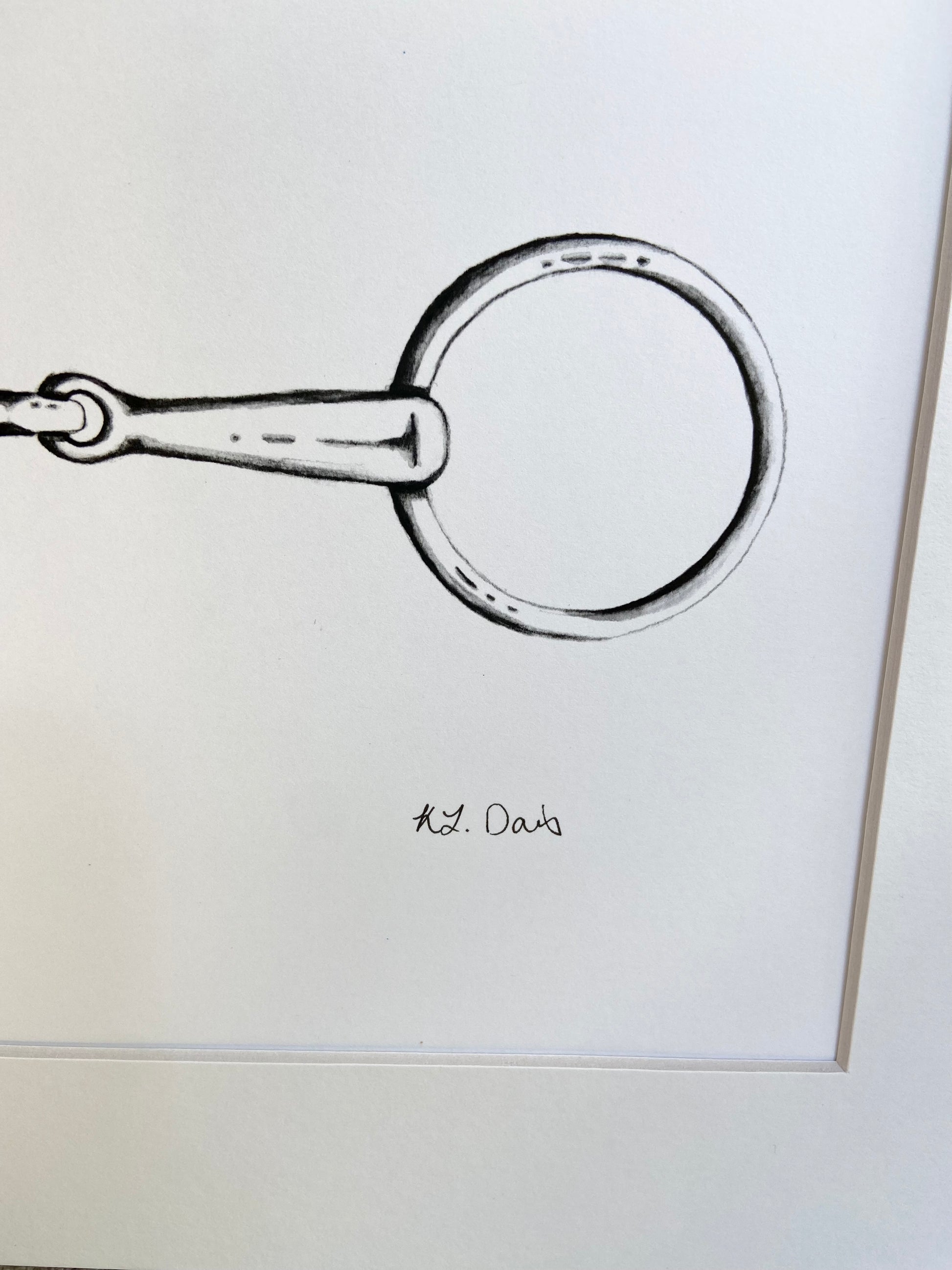 The Loose Ring Snaffle is a mild snaffle bit used in most disciplines. The round rings carry your eye across the page. This bit creates a modern yet classic feel in any room. This print comes matted and signed by the artist.