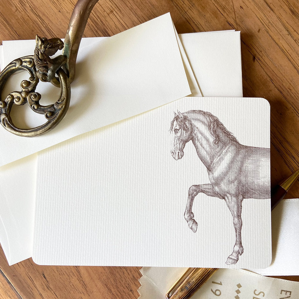 Send your correspondence in style! These hand-drawn illustrations are flat printed with an environmentally-friendly, soy-based ink on premium, USA-made Ecru textured Laid 80# cover stock paper. Designed and printed in New Orleans.